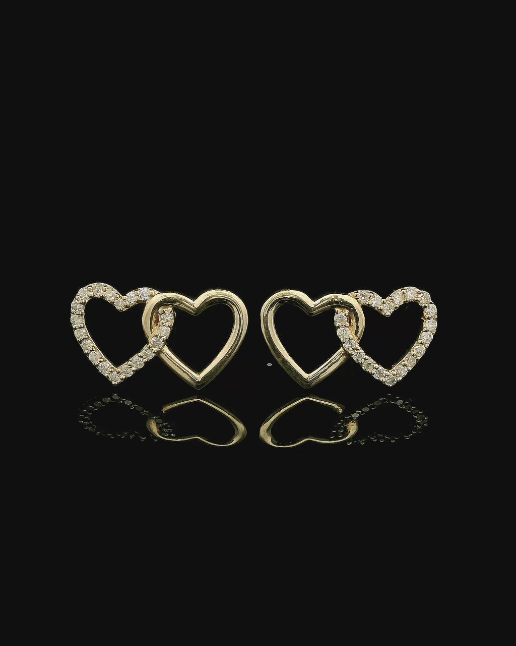 These double-heart earrings are all about connection, one polished gold heart intertwined with a sparkling diamond heart, symbolizing two souls linked together. The design is simple, soft, and full of meaning, making them the perfect everyday piece or a beautiful gift for someone you love.