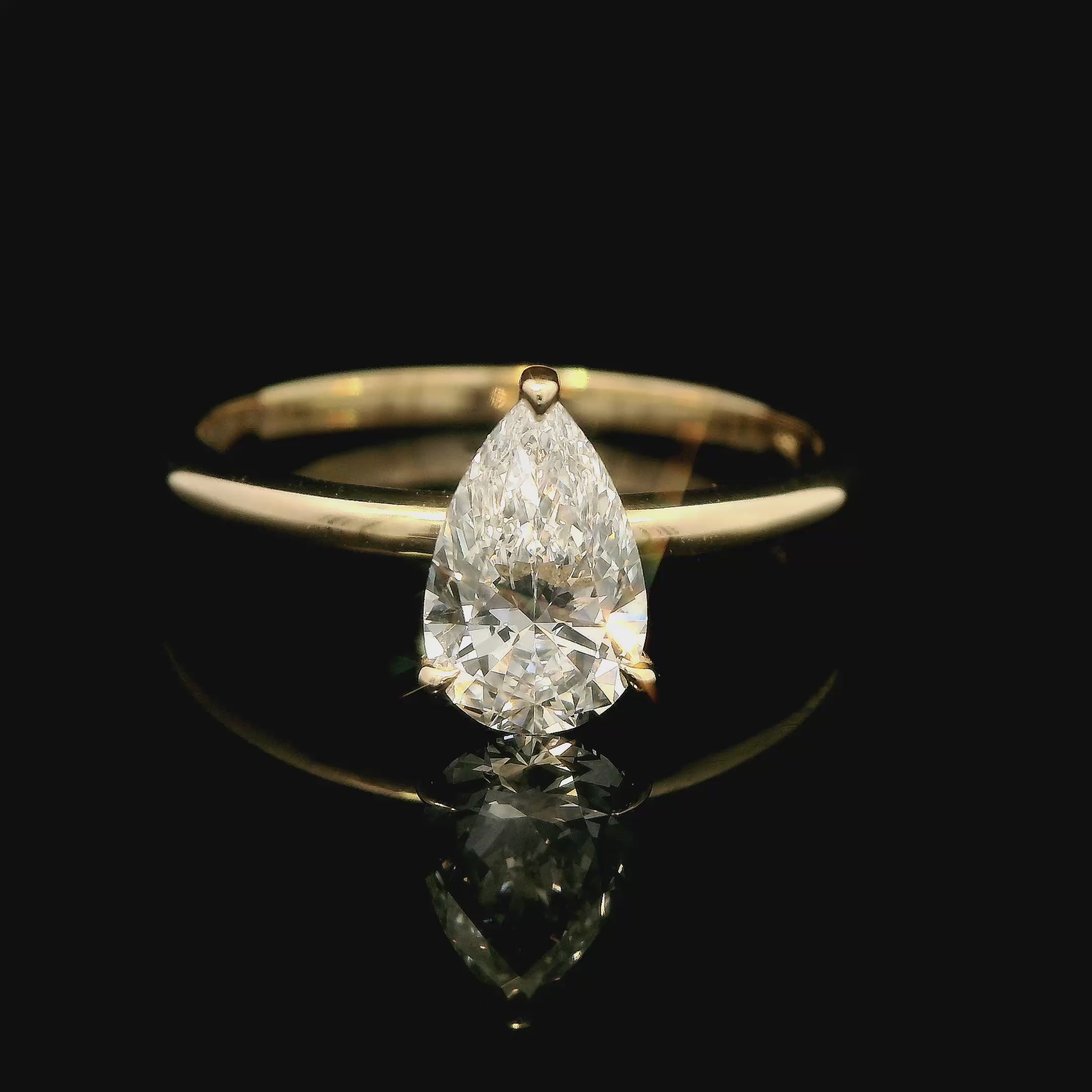 Discover the timeless beauty of MaMél's solitaire engagement ring featuring a 1 ct lab colorless VS1 pear-shaped diamond. Perfect for those seeking modern yet classic elegance.