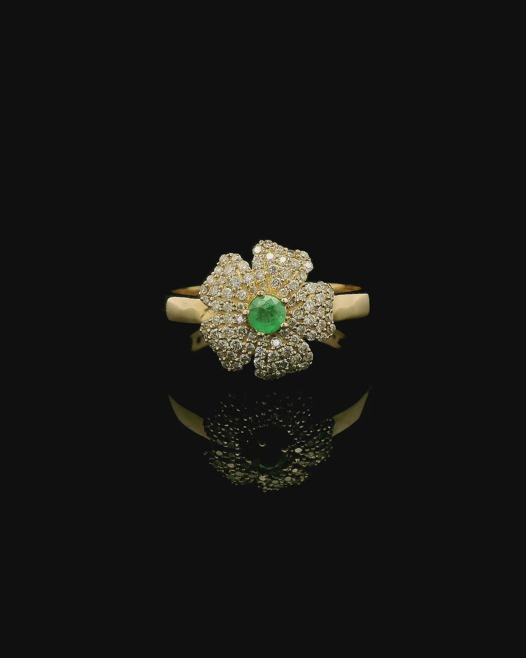 A flower that never fades. This stunning natural diamond and emerald ring by MaMél Lux captures the quiet poetry of nature in full bloom. At its heart rests a vivid round emerald the symbol of renewal, growth, and protection embraced by a halo of sparkling F–G,