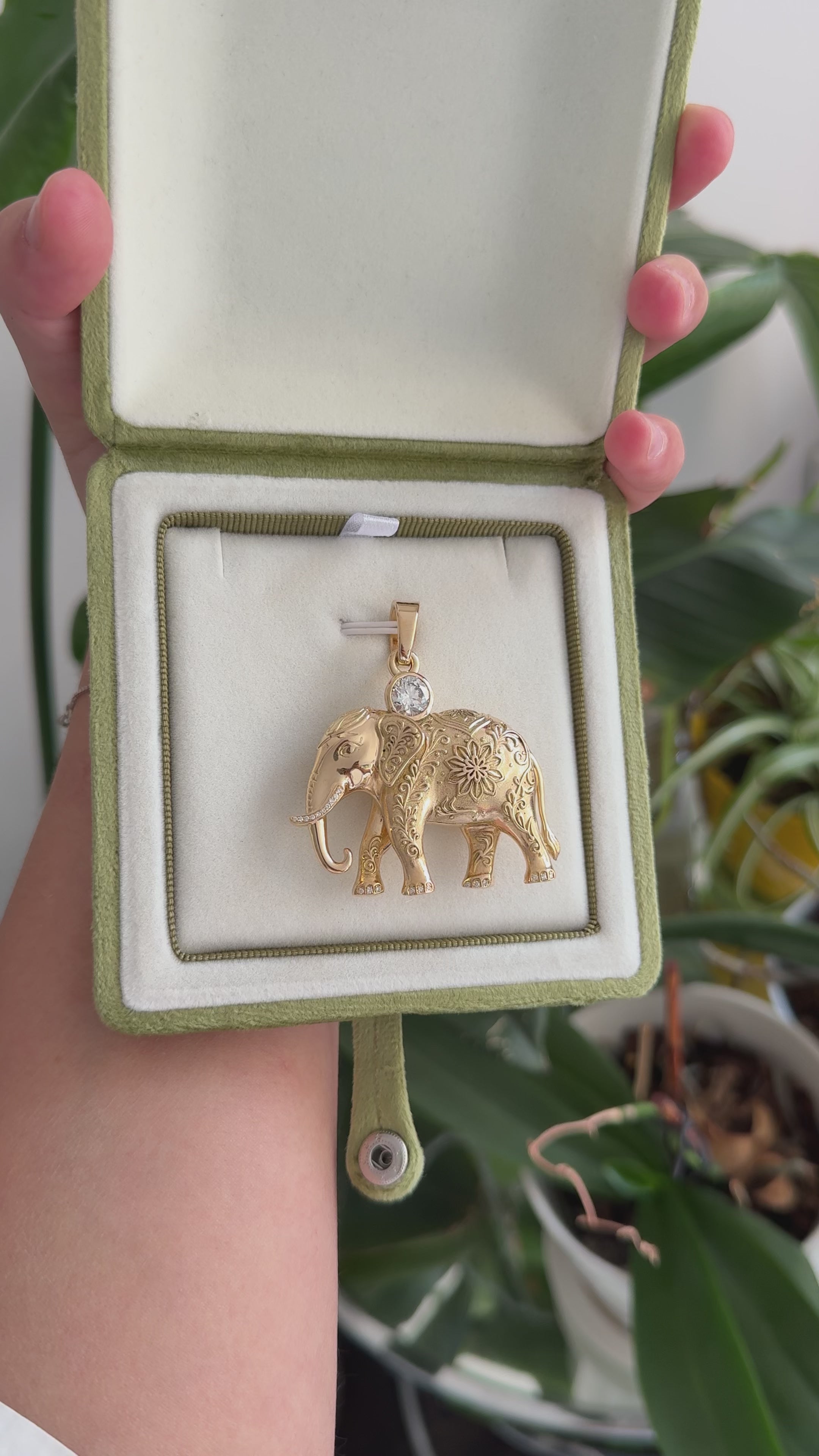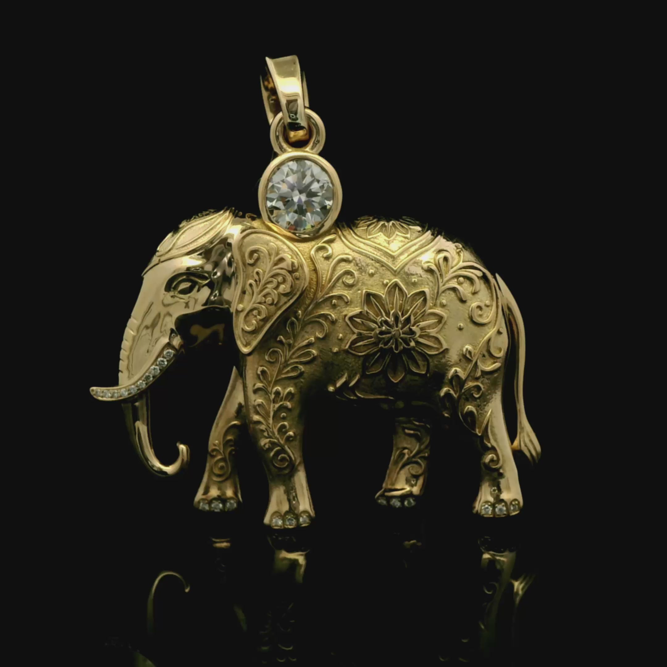 Step into elegance with this handcrafted 18kt gold elephant pendant, featuring a stunning 2ct lab grown certified VVS colorless round diamond. Designed to embody strength, protection, and prosperity, this piece blends deep symbolism with timeless luxury.